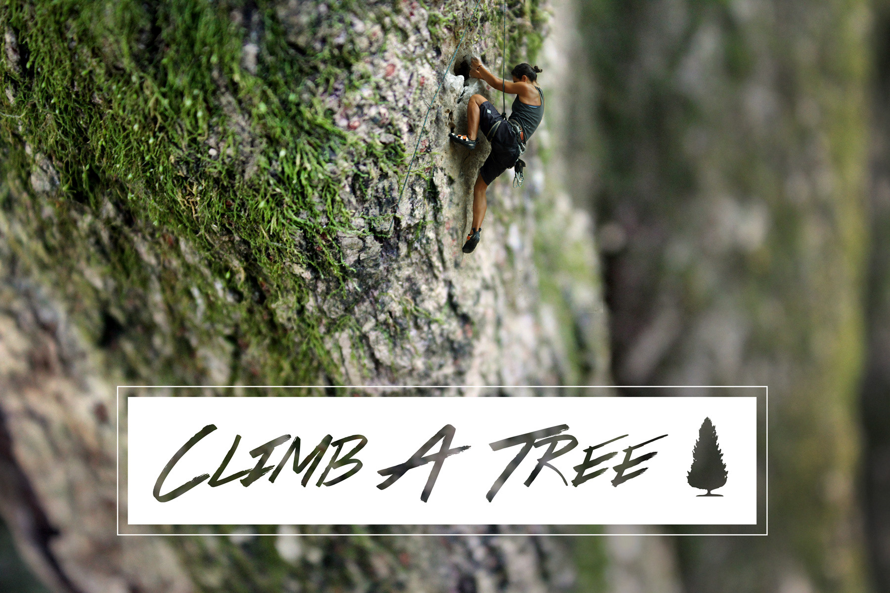 Photoshop exercise placing rock climber in a close-up shot of a tree.