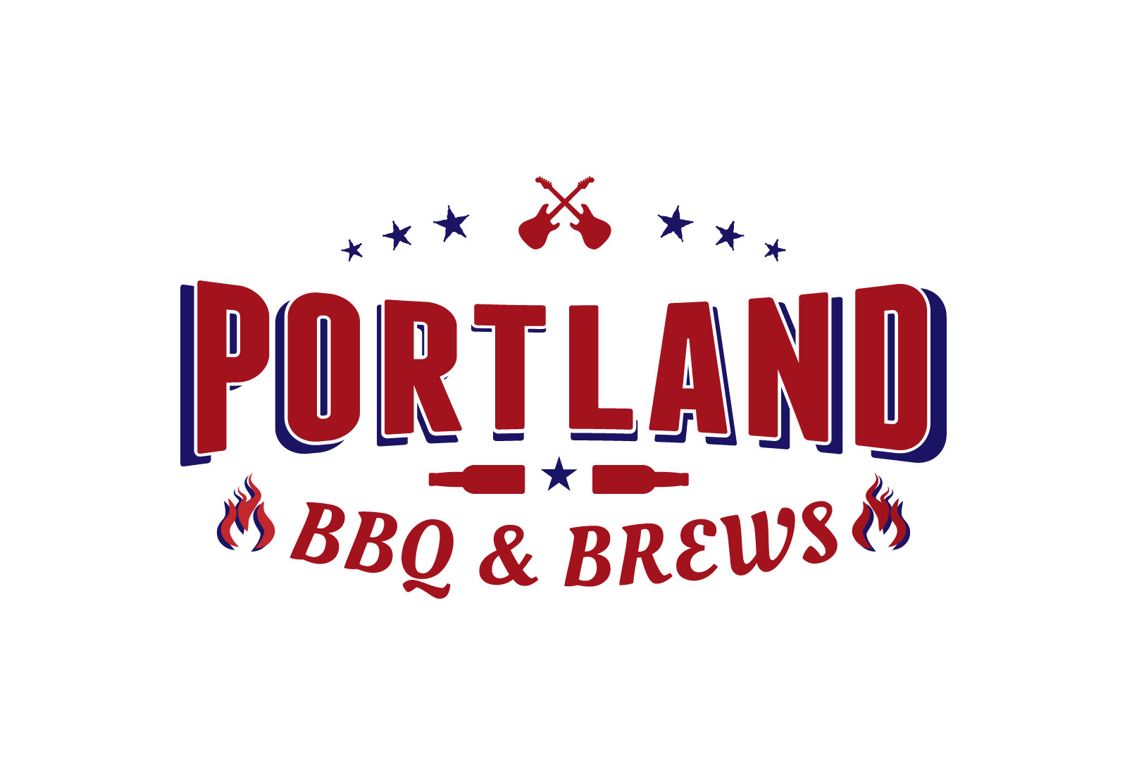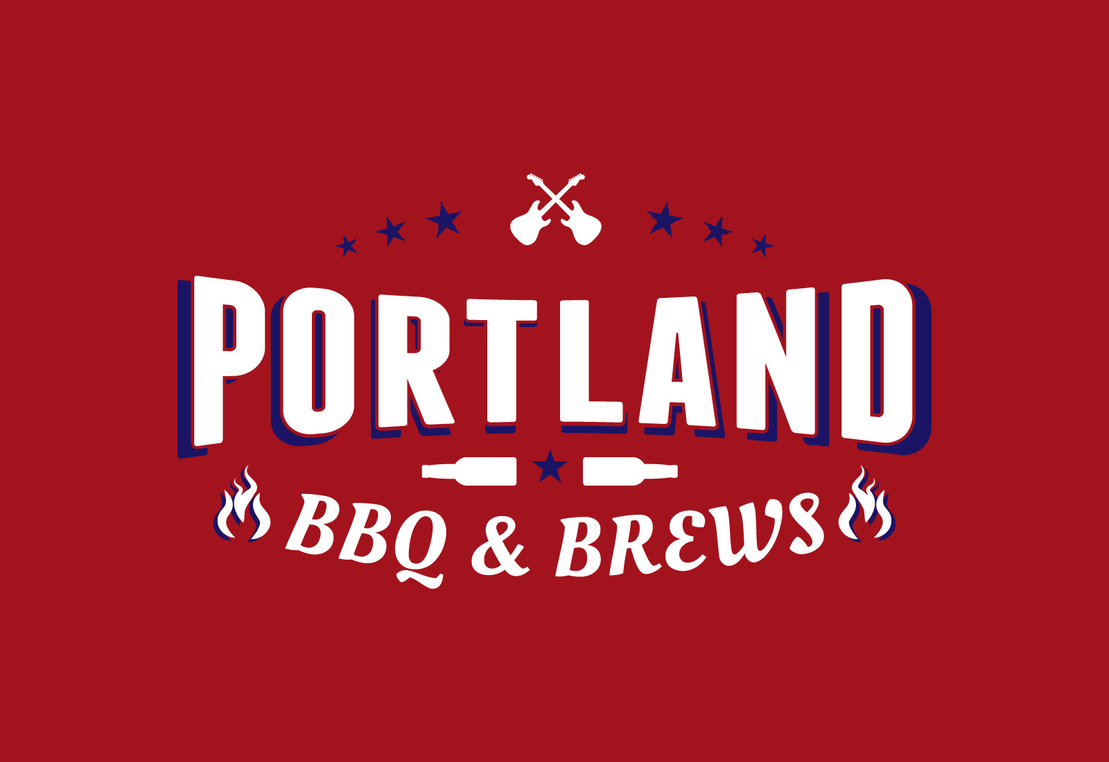 Logo/brand development for Portland BBQ and Brews. Logo incorporates food, music and beer with an eye catching warped headline and vintage style layout.