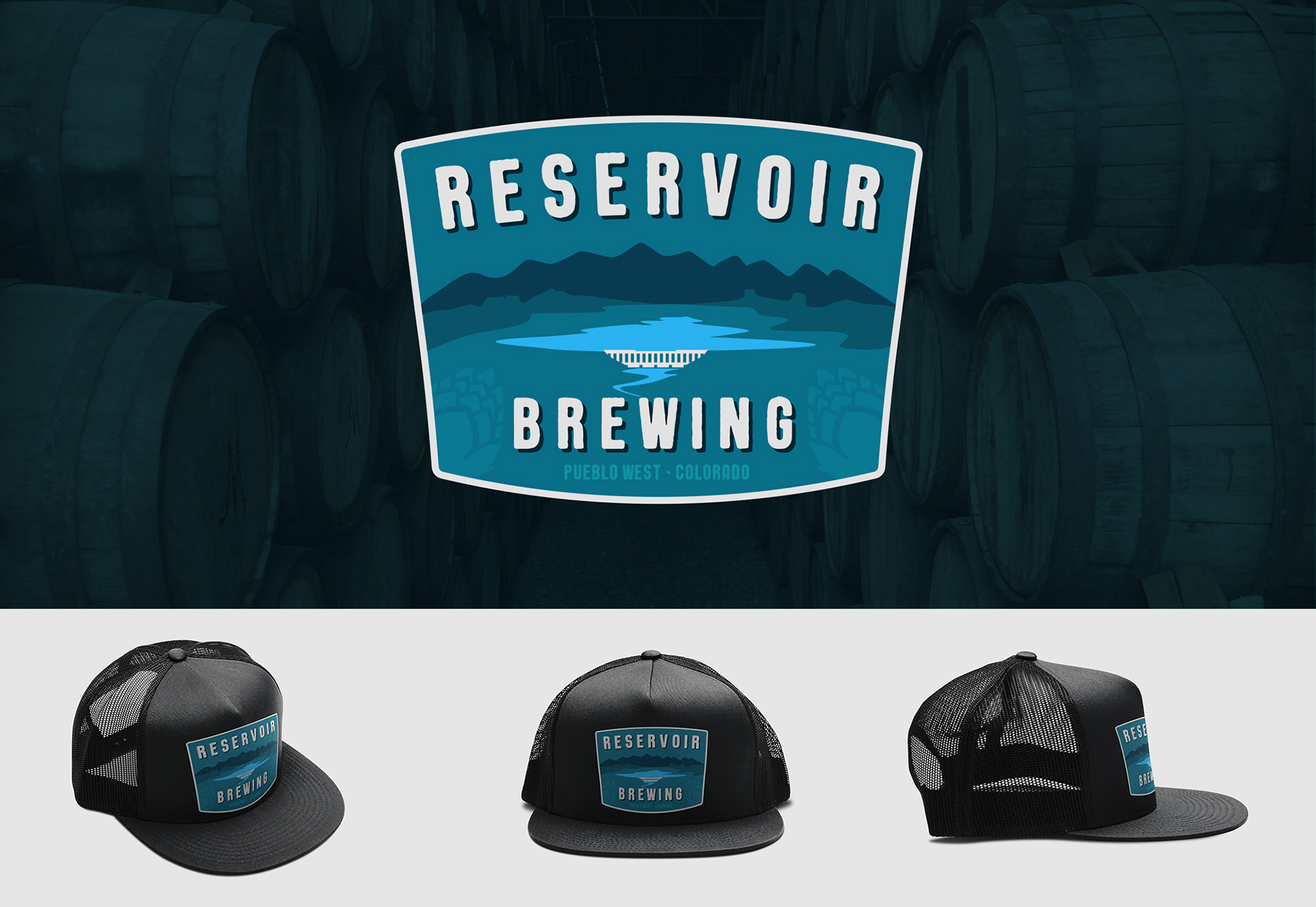 Logo developed for brewery in Pueblo West, Colorado. The dam and surrounding topography was incorporated in the illustration.